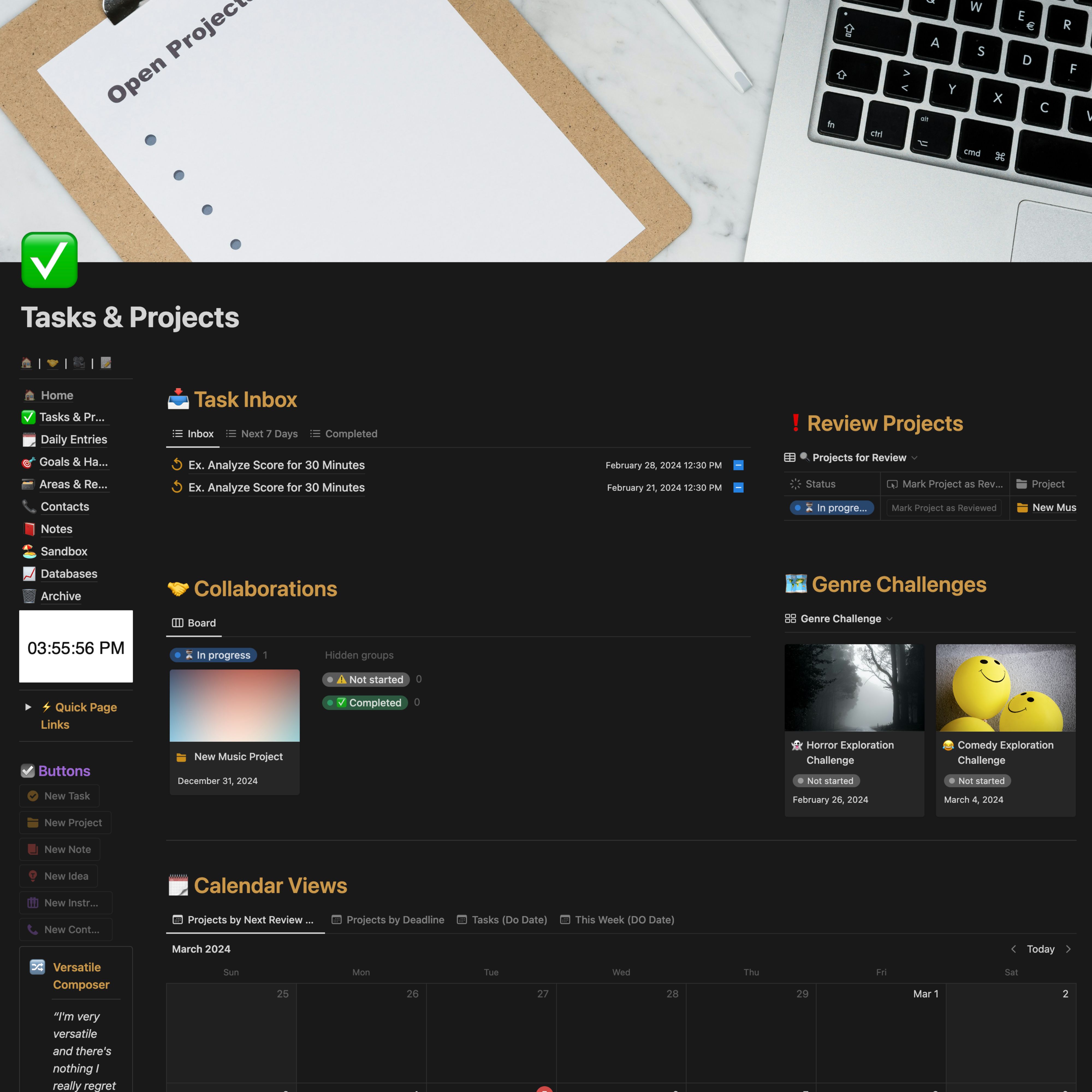 Organize compositions, gigs, and collaborations with ease. Streamline your project workflow with integrated calendars, streamlined task creation, and project review features.