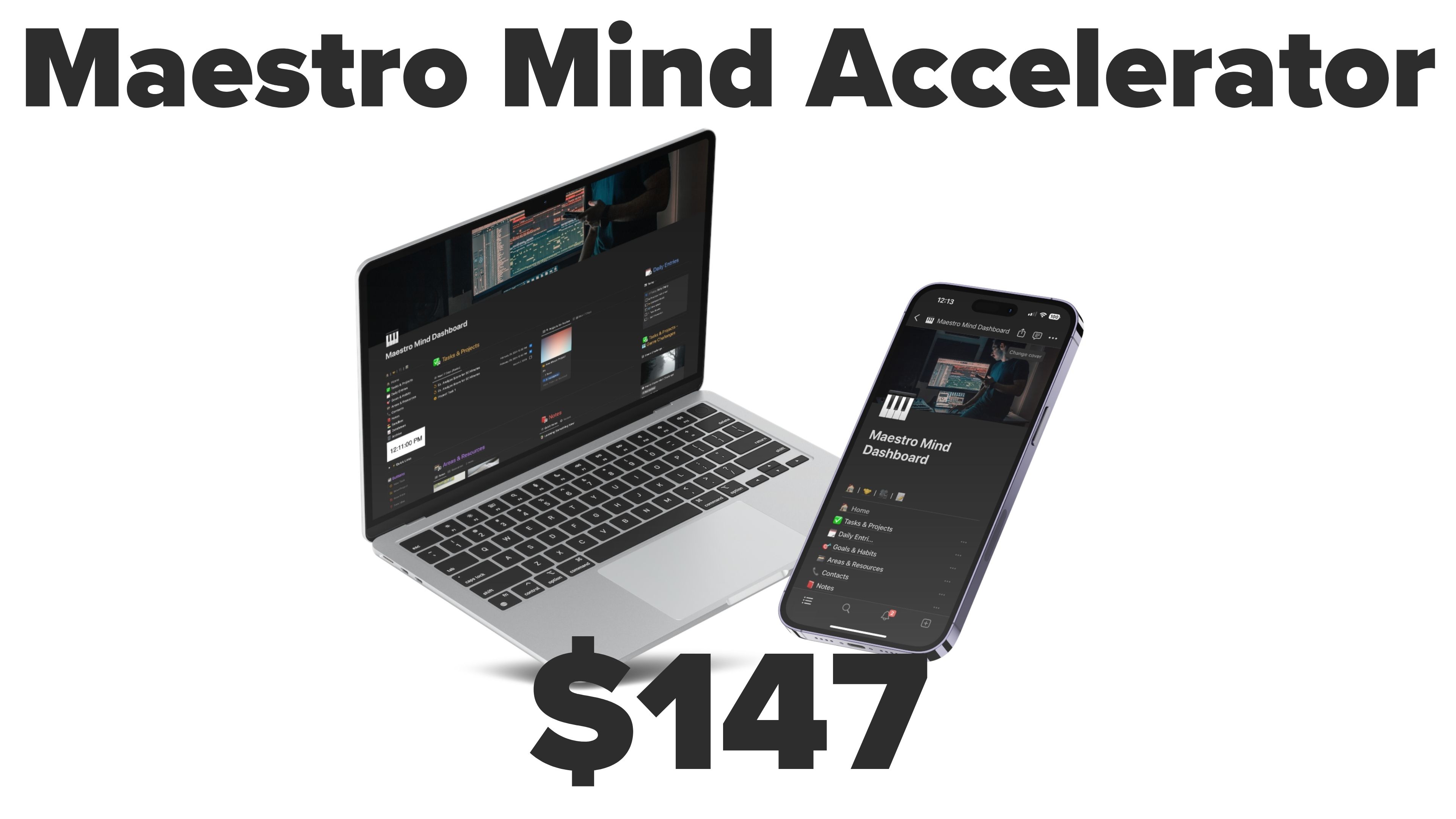 Elevate your music career with the Maestro Mind Accelerator β your personalized self-guided coaching system for productivity, growth, and achieving your musical ambitions. This comprehensive Notion template adapts to your unique journey, whether you're setting goals, cultivating habits, or seeking focused progress.